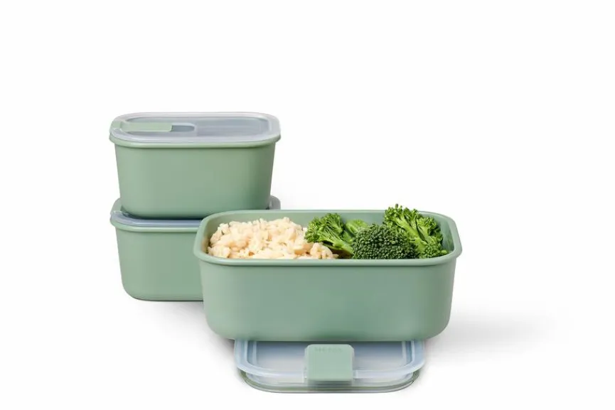 Die Vorratsdose Easyclip 3tlg. von Mepal ist die perfekte Lösung, um Salate, Nudeln und andere Gerichte frisch aufzubewahren. Die Dosen sind auslaufsicher, luft- und aromadicht, sodass die Lebensmittel länger frisch bleiben. Die Vorratsdose Easyclip 3tlg. ist modular aufgebaut und leicht stapelbar, wodurch sie Platz sparen.
