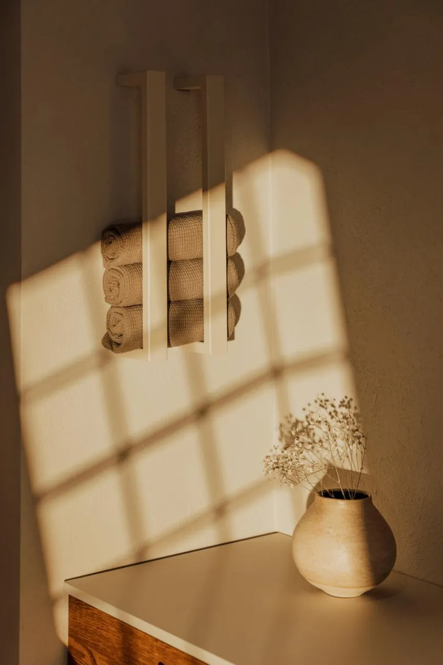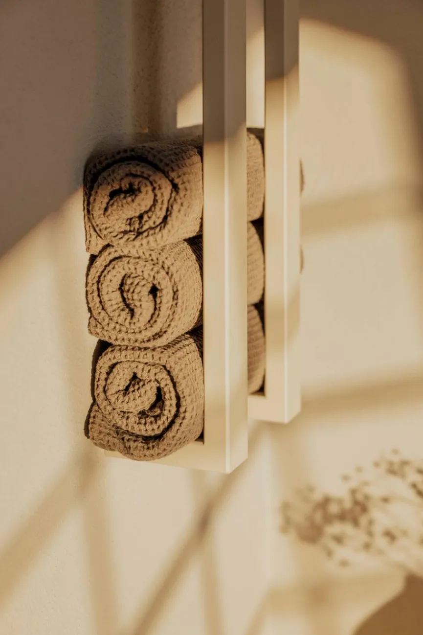 - Platz für bis zu sechs mittelgroße Handtücher (gerollt)