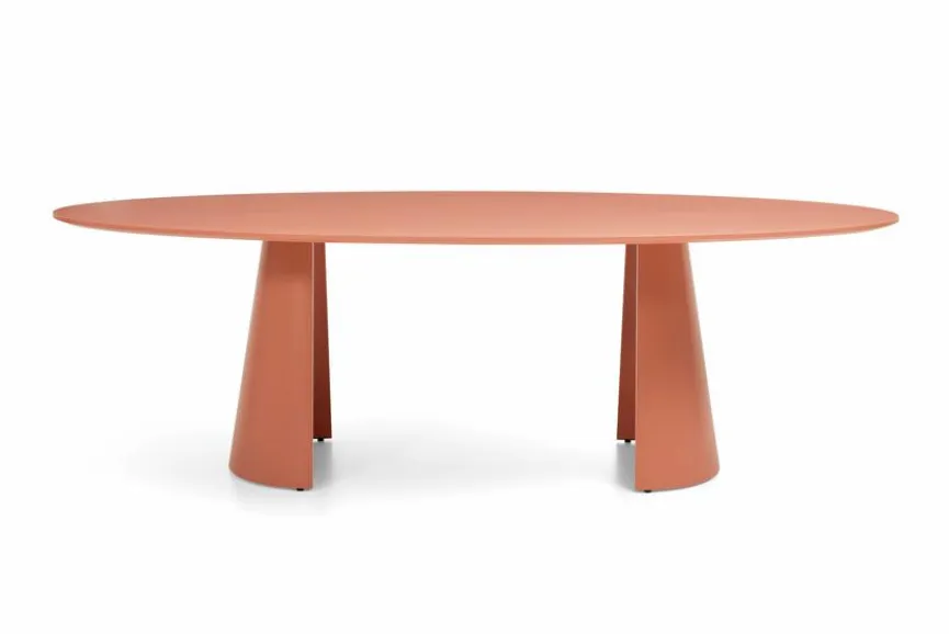 Der Esstisch JustB! SP150 220×115 cm von Musterring wirkt dank des Sockels in Gestalt einer geteilten Kegelsäule wie eine Skulptur. Lackierte Oberflächen bringen die extravagante Formensprache dieses Esszimmertischs fantastisch zur Geltung. Als Ergänzung zum Esstisch JustB! SP150 220×115 cm bieten sich zum Beispiel schlank gezeichnete Metallstühle im minimalistischen Stil an.