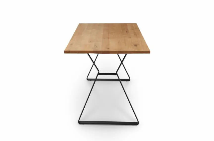 Der Esstisch Tallinn 200×100 cm von Musterring beweist perfekt, dass sich hohe Funktionalität und außergewöhnliches Design gelungen miteinander verbinden können. Ein besonderer Blickfang sind seine außergewöhnlichen Kufen, mit denen dieser hübsche Esszimmertisch punktet. Sie verjüngen sich mittig und laufen nach oben und unten trapezförmig auseinander. Dieses Top-Design lässt den Esstisch Tallinn 200×100 cm zu einem stilsicheren Key-Piece im modernen Ambiente werden.