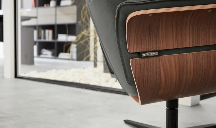 - Gestell aus Metall und Sichtholz-Formschale in Nussbaum