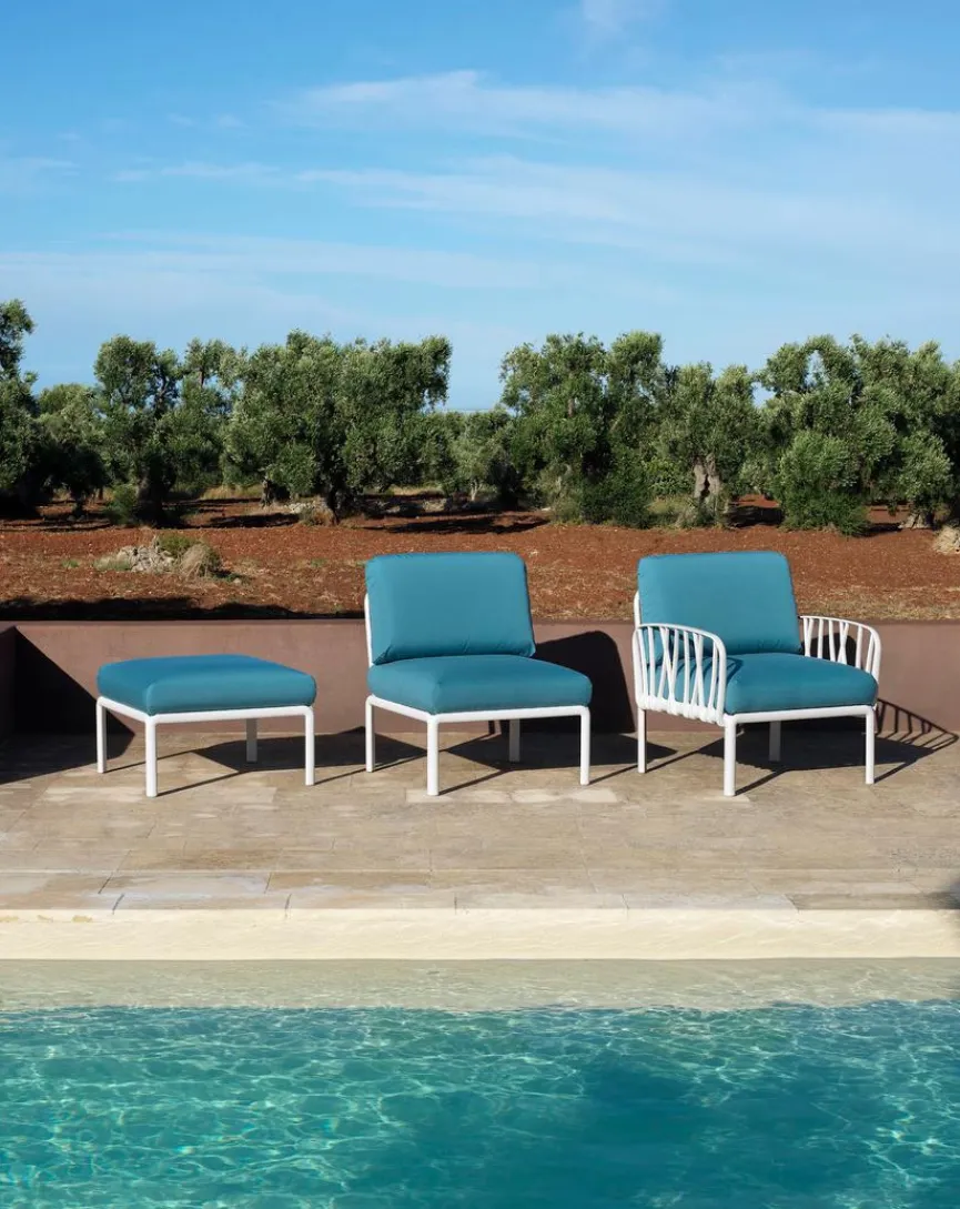 - Sitz aus Polyurethanschaum mit 53 % recyceltes Sunbrella® Polyacryl, 47% fasergefärbtes Sunbrella® Polyacryl in blau