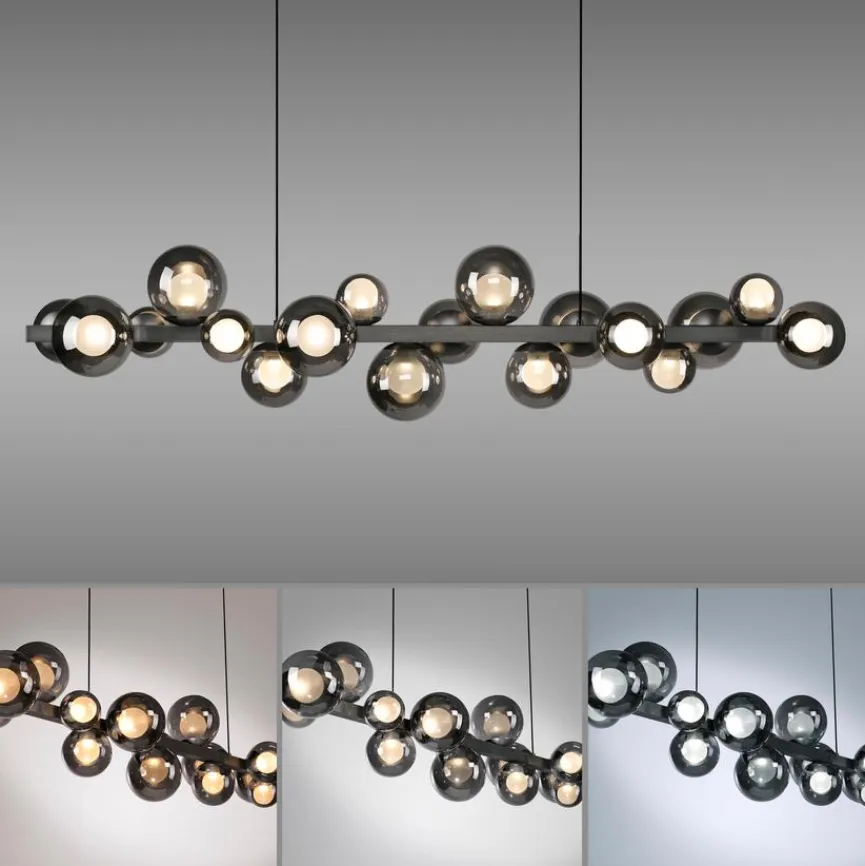 Diese edle LED-Pendelleuchte E-Popup besticht durch Ihr exklusives Design, das Hightech-Innovation mit höchstem ästhetischen Anspruch vereint. Ihren schmalen, schlanken Korpus verzieren zahlreiche Leuchtmittel, die sich zierlich aneinander reihen und ihr Licht durch die abgetönten, kugelförmigen Rauchglasschirme dieser LED-Pendellampe sanft verströmen. Über dem Esstisch beleuchtet die LED-Pendelleuchte E-Popup nicht nur wunderschön Ihre Dinner-Tafel und setzt Ihre Speisen in Szene, sondern erinnert gleichzeitig an Lichtdesign moderner Kunst.