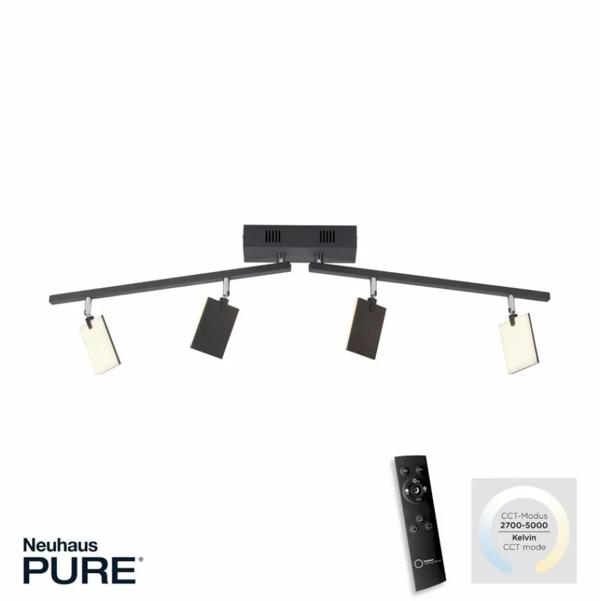 Sorgen Sie mit dem LED-Strahler Pure Mira aus dem Sortiment von Paul Neuhaus für zeitgemäßes Licht in Ihrem Wohnbereich. Sie können die vier geometrisch geformten LED-Spots nach Belieben individuell ausrichten. Zudem lässt sich die Farbtemperatur sowie die Lichtitensität des LED-Strahlers Pure Mira bequem per Fernbedienung einstellen.