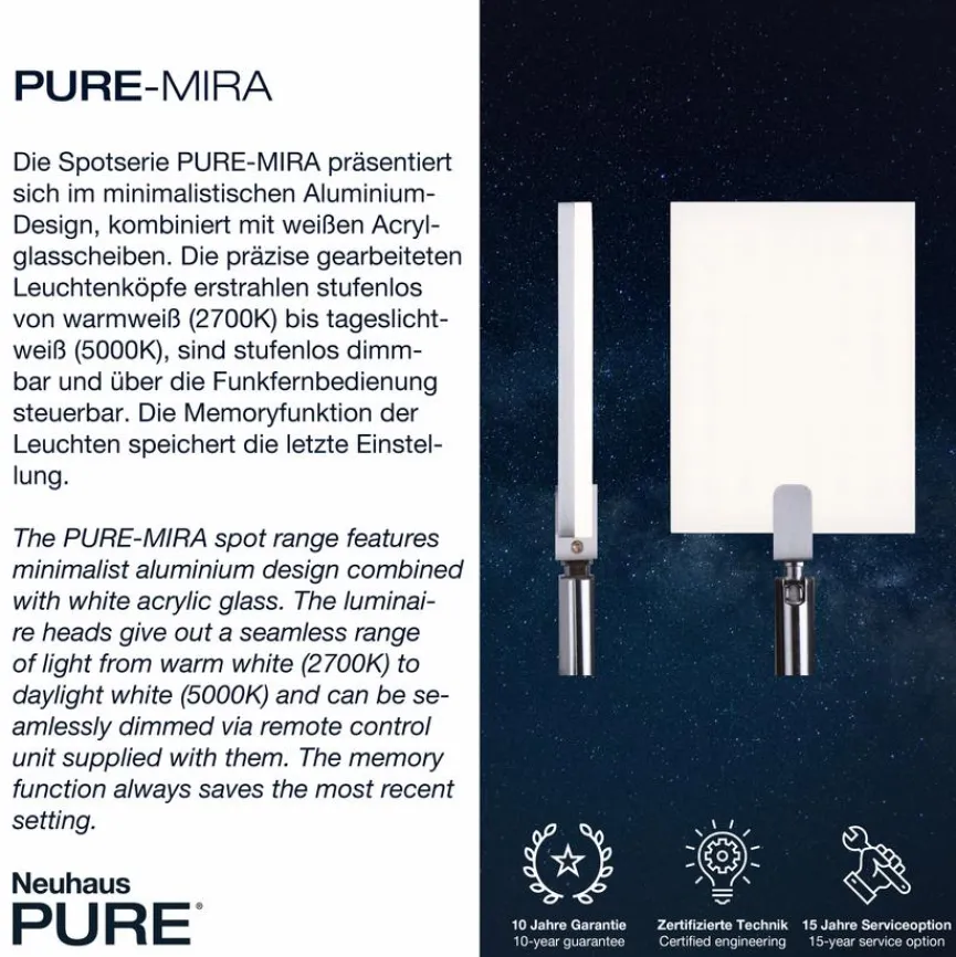 - Mit Fernbedienung zum Dimmen und Einstellen der Farbtemperatur (2.700 – 5.000 Kelvin)