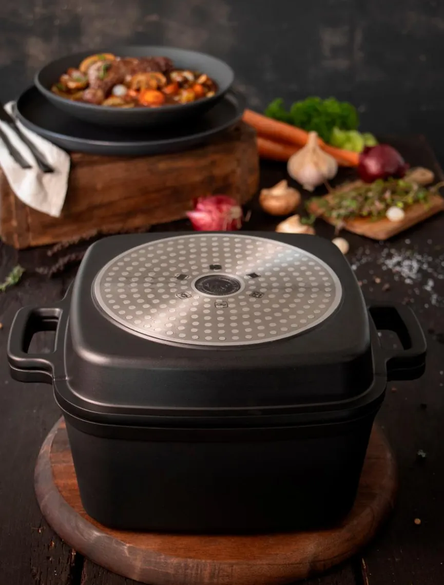 Mit dem Bräter Cubus 3tlg. von ELO wird Kochen zum Erlebnis. Der hochwertige Bräter eignet sich ideal für Schmorgerichte, Braten oder Aufläufe, egal ob auf dem Herd oder im Ofen. Dank seiner durchdachten Form, dem robusten Material und dem passgenauen Deckel überzeugt der Bräter Cubus 3tlg. durch Funktionalität, Vielseitigkeit und gleichzeitig durch edles Design.