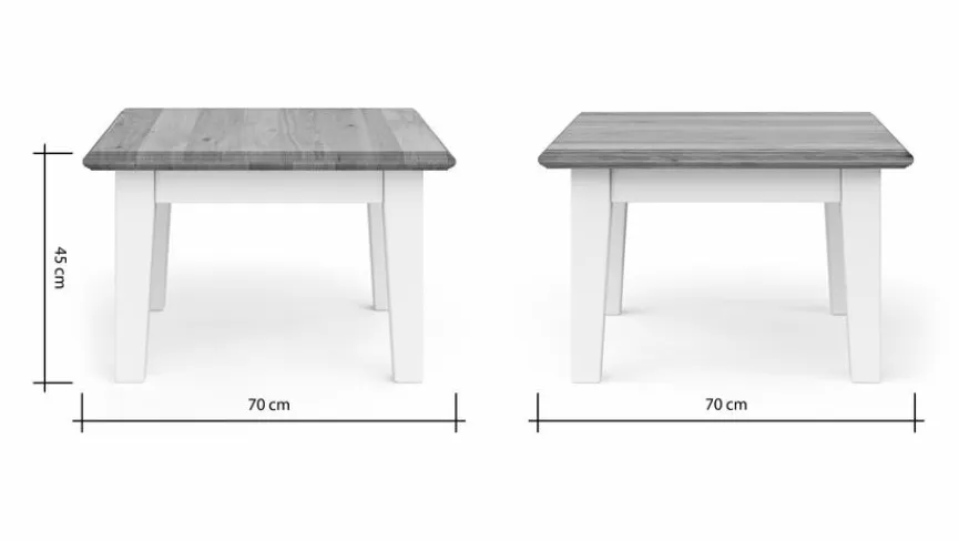 Mit dem Couchtisch Barreiro ergänzen Sie Ihre Einrichtung auf geschmackvolle Weise. Dieser quadratische, hochwertig gearbeitete Wohnzimmertisch passt wunderbar in ein Interieur im trendigen Landhausstil. Der schicke Couchtisch Barreiro bietet Ihnen zudem eine große Ablagefläche für Gläser, Snacks, Fernbedienungen, Zeitschriften oder Bücher.