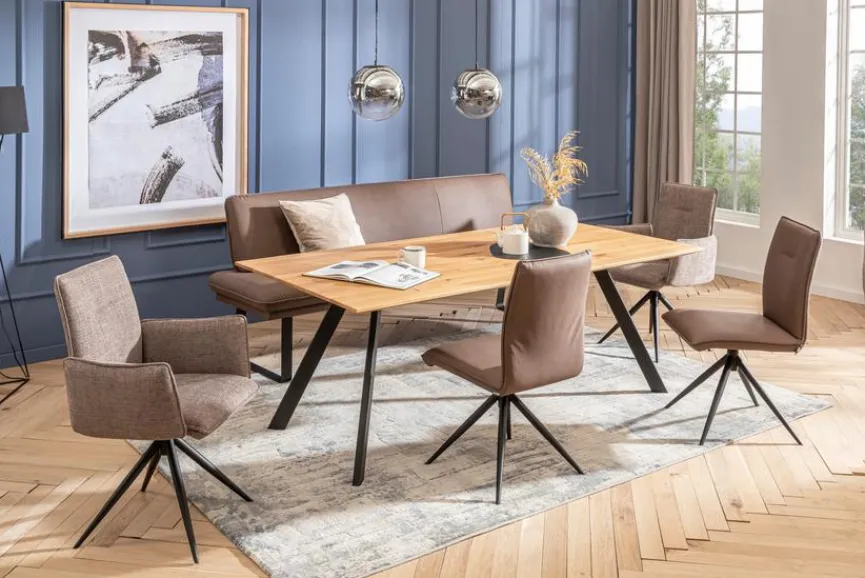 Mit dem Esstisch Amarillo 200×100 cm von Komfort & Wohnen kreieren Sie in Ihren vier Wänden eine angenehme Atmosphäre. Die Platte aus massiver Asteiche bestimmt die warme und zugleich geschmackvolle Optik dieses Esszimmertisches. Abgespreizte Beine aus Metall setzten dagegen einen attraktiven optischen Kontrast. Auch qualitativ überzeugt der erstklassig verarbeitete Esstisch Amarillo 200×100 cm auf allen Ebenen.