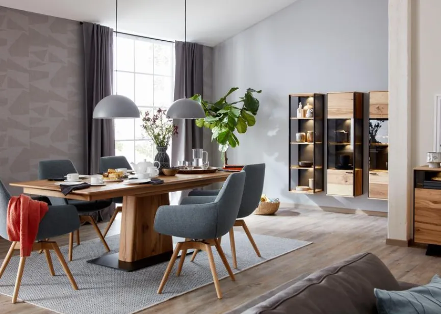 An dem Esstisch mit Auszug Easy 220(320)x100 cm kann die ganze Familie bequem Platz nehmen und eine gemeinsame Zeit genießen. Der Esszimmertisch lässt sich für hohe Flexibilität mit wenigen Handgriffen vergrößern. Zudem bereichert der Esstisch mit Auszug Easy 220(320)x100 cm den Raum durch sein elegantes Design.