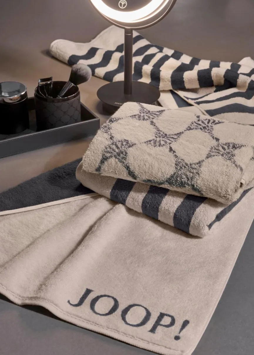 Nach der Dusche oder einem entspannten Bad bedeutet es pures Wohlbehagen, sich in das Handtuch Stripes 50×100 cm von JOOP! zu kuscheln. Es besteht aus weichem, besonders hautfreundlichem Material, das sich herrlich an den Körper schmiegt. Der klassische gestreifte Look mit dem eingearbeiteten Logo verleiht dem Handtuch Stripes 50×100 cm ein edles Flair und macht es zu einem Blickfang im Bad.