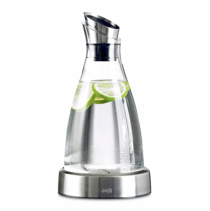 Im Sommer sind gekühlte Getränke eine Wohltat. Die Karaffe Flow von Emsa hält Getränke dank des integrierten Kühlakkus im Sockel bis zu 4 Stunden kühl. Mit dem Ausgießer, der mit einer automatischen Verschlusskappe versehen wurde, ist das Einschenken mit der Karaffe Flow von Emsa besonders komfortabel.