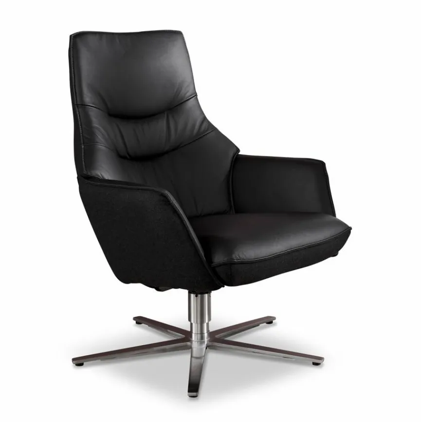- Bezug der Sesselinnenseite aus Leder (24 Longlife) in black, Bezug der Sesselaußenseite aus Stoff (18 Salino) in black, Sternfuß Edelstahloptik gebürstet (U)