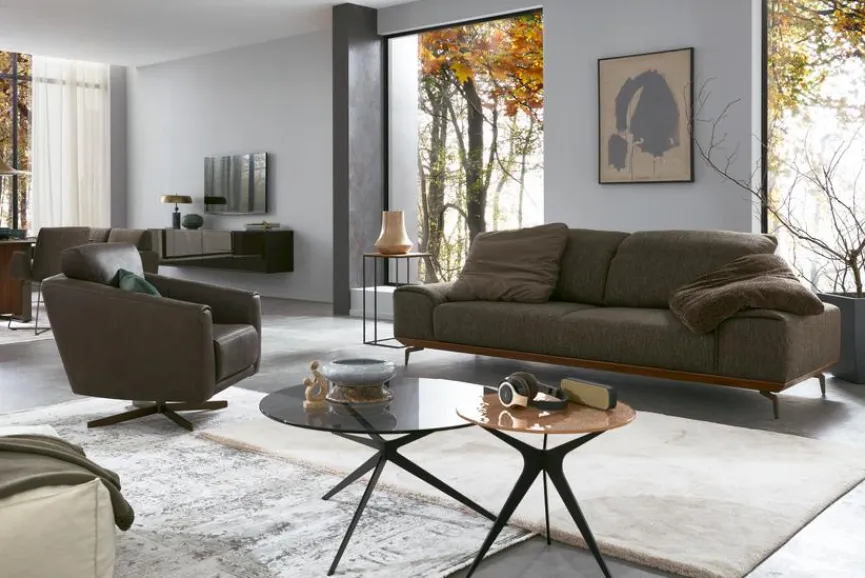 - Bezug aus Stoff (JAB2) in graubraun (25021), Füße aus Metall (FC3) in bronze (M56)