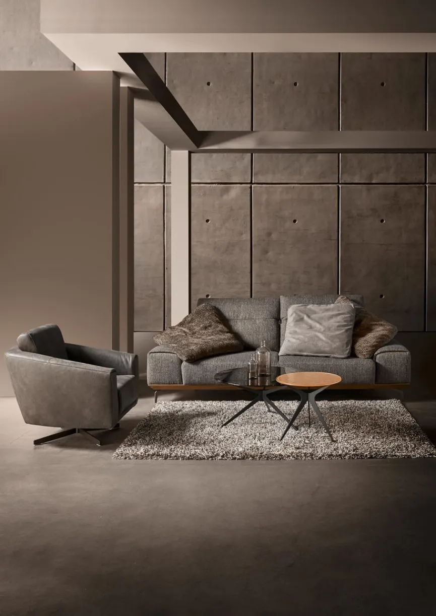 - Polsterung aus Polyesterfasern und Schaumstoffstäbchen (Soft), Unterfederung durch dauerelastische Stahlwellenfedern und flexible Polstergurte
