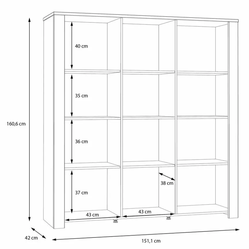- Mit 3 Türen (2 Türen davon mit Glaseinsatz) und 9 Böden