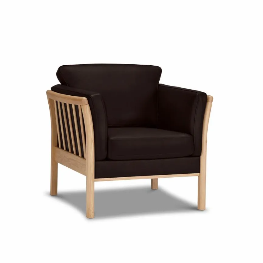 Der gemütliche, Behaglichkeit vermittelnde Sessel K129 Aya von Scandinavian Upholstery vereint stilvolles nordisches Design und einladenden Komfort. Für ausgedehnte Ruhepausen eignet sich der zeitlos wirkende, mit dekorativen Armlehnen ausgestattete Polstersessel ausgezeichnet. Als ästhetisches Sitzelement bereichert der robuste, hochwertig gearbeitete Sessel K129 Aya jede Wohnlandschaft.