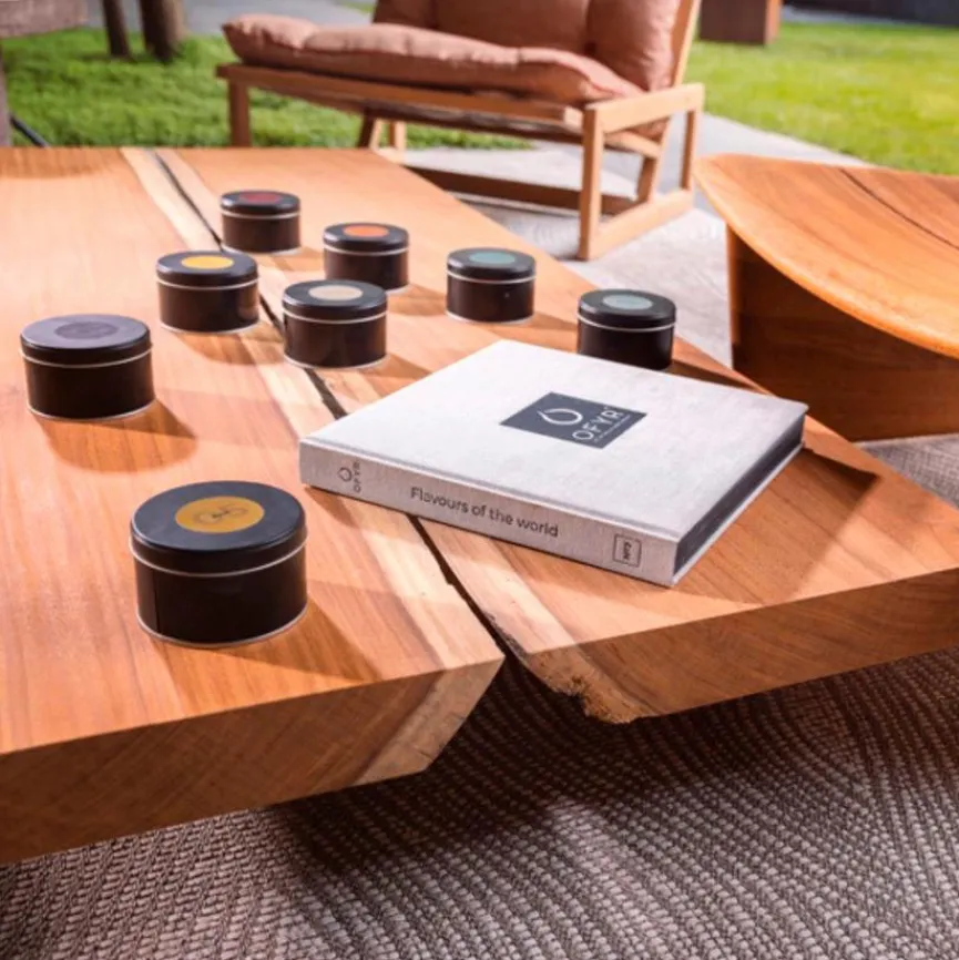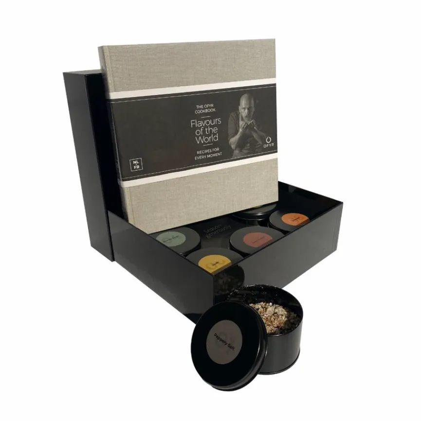 Das zweite OFYR Kochbuch Flavours of the World steckt voller Inspirationen für das Outdoor-Cooking. Das Buch ist mit 8 exklusiven Gewürzmischungen erhältlich, die von Guy Weyts entwickelt wurden. Es werden Rezepte für viele verschiedene Gerichte beschrieben, von Vorspeisen bis zu Desserts. Die Rezepte zeigen, wie man die Gewürze am besten einsetzt und wie man die OFYR optimal nutzt.