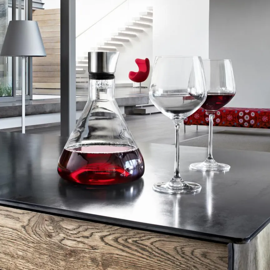 Mit der Dekantierkaraffe Delta von Blomus erleben Sie Wein vom Feinsten. Wenn Sie den Wein einfüllen, wird er gleichzeitig gelüftet und gefiltert. Vorhandener Weinstein bleibt beim Gießen im Sieb zurück, so macht die Dekantierkaraffe Delta von Blomus jede Flasche Wein zu einem Genuss.