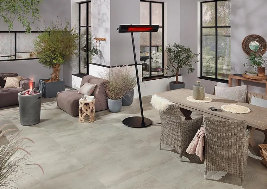 Mit dem Heizstrahlerständer Pure brauchen Sie im überdachten Außenbereich oder auf der Terrasse nicht zu frieren. Der Heizkörper ist aufgrund eines langen Kabels räumlich sehr flexibel einsetzbar und bietet dank eines stabilen Standfußes auch einen sicheren Halt. Außerdem überzeugt der Heizstrahlerständer Pure mit einem hohen Leistungsvermögen, wobei Sie per Schalter bequem zwischen 50% und 100% wählen können.
