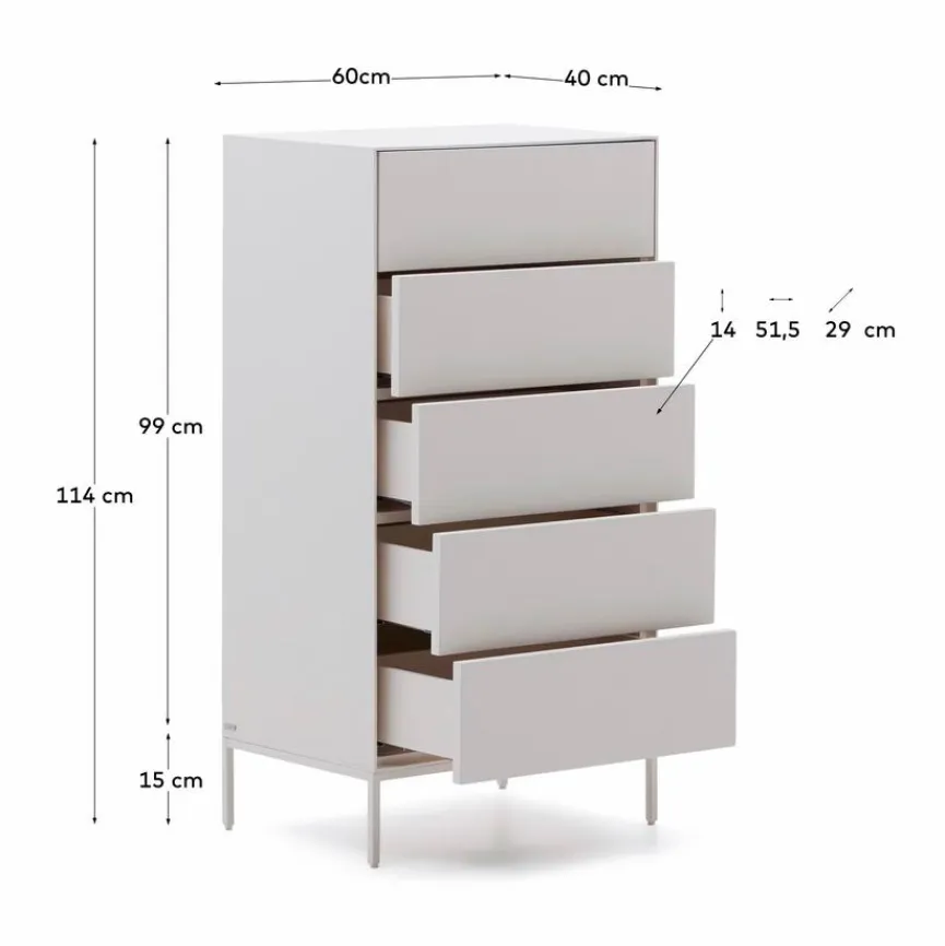 Die Kave Home Kommode Vedrana beeindruckt aus gestalterischer Sicht mit grifflosen Fronten, einer geradlinigen Formensprache ganz ohne Schnörkel sowie mit einem herrlich schlank gezeichneten, lackierten Metallgestell. Push-to-open-Systeme sorgen für Komfort im Alltag. Eine passende Option ist die Kommode Vedrana zum Beispiel für modern eingerichtete Räumlichkeiten im minimalistischen Stil.