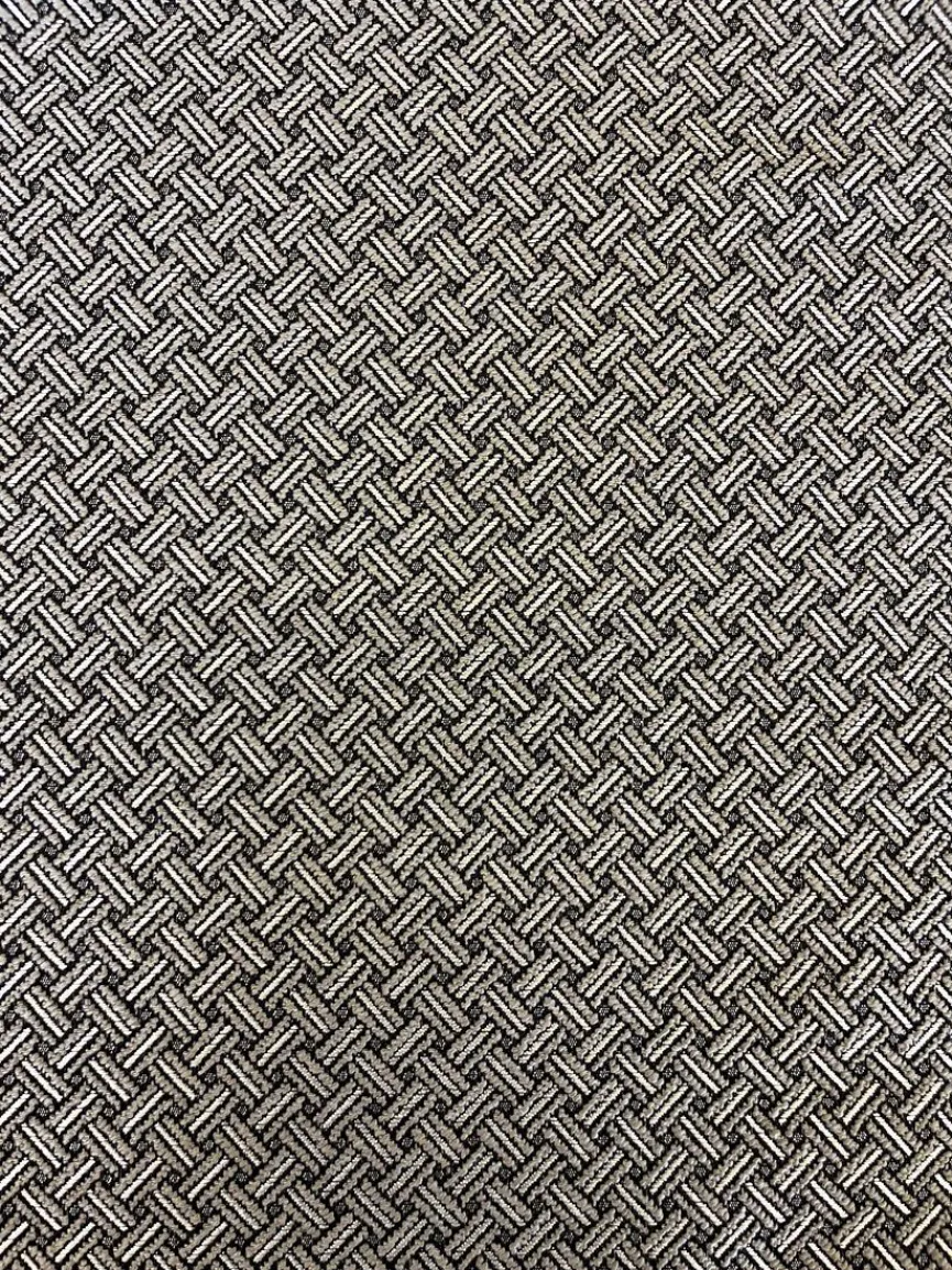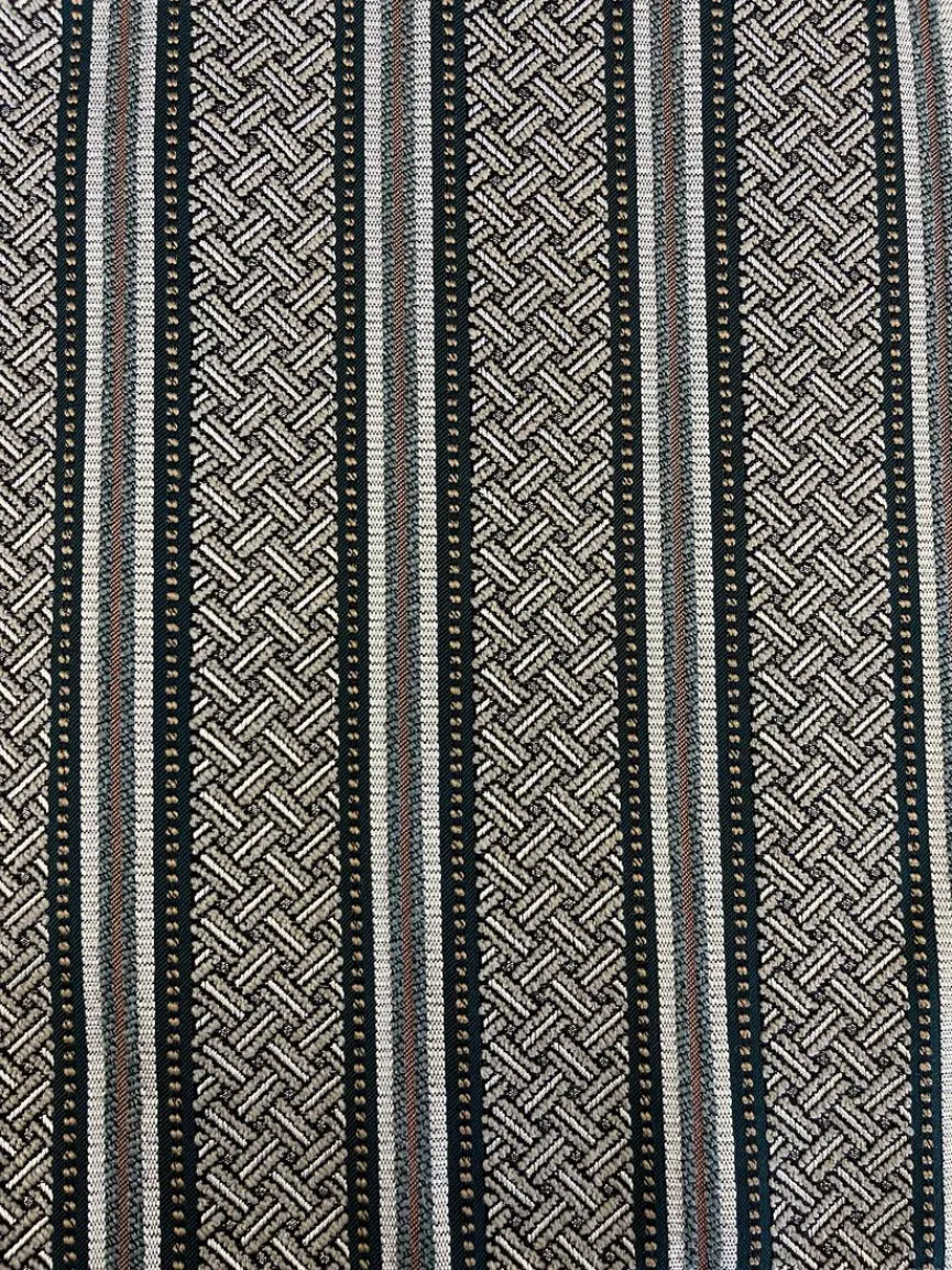 - Sitz- und Korpusbezug aus Stoff (KO 257/50) in grau-beige gemustert, Rückenkissenbezug aus Stoff (KO 256/50) in grau-beige gestreift, Füße Kunststoffgleiter