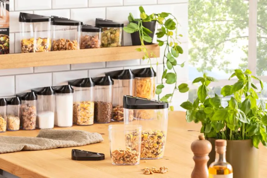 Mit dem Set Vorratsdose 15tlg. haben Sie die Möglichkeit, in Ihrer Küche die oft gebrauchten Grundnahrungsmittel wie z.B. Nudeln, Zucker und Mehl oder Getreideflocken immer griffbereit zur Hand zu haben. Dank der praktischen Ausgießkonstruktion ist die Handhabung der einzelnen Behälter ausgezeichnet. Zudem können Sie mit dem Behälterensemble Vorratsdose 15tlg. die Lebensmittel vor Ungezieferbefall durch Motten o.ä. geschützt aufbewahren.