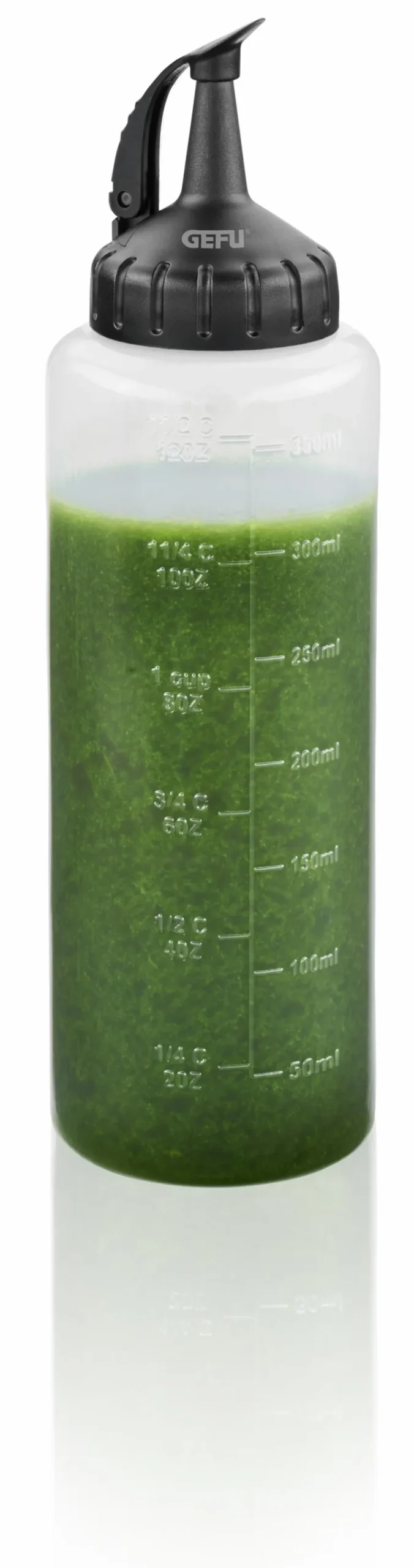 Die Dosierflasche Flexi-Fill 350 ml von GEFU erleichtert Ihnen die Arbeit in der Küche. Problemlos können Sie Flüssigkeiten wie etwa Soßen oder Dressings genau dosieren, damit Ihre Rezepte noch köstlicher werden. Wenn Sie ein Fan von kulinarischen Köstlichkeiten sind, so darf die Dosierflasche Flexi-Fill 350 ml in Ihrer Küche nicht fehlen.