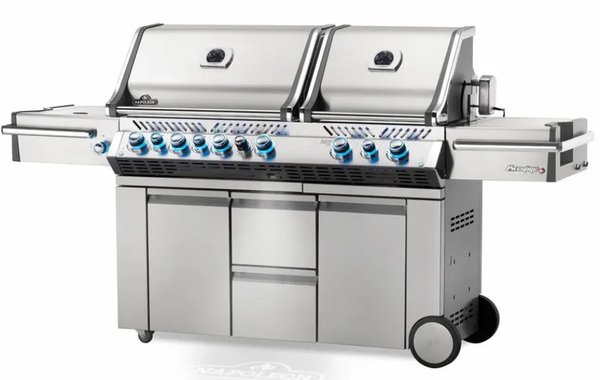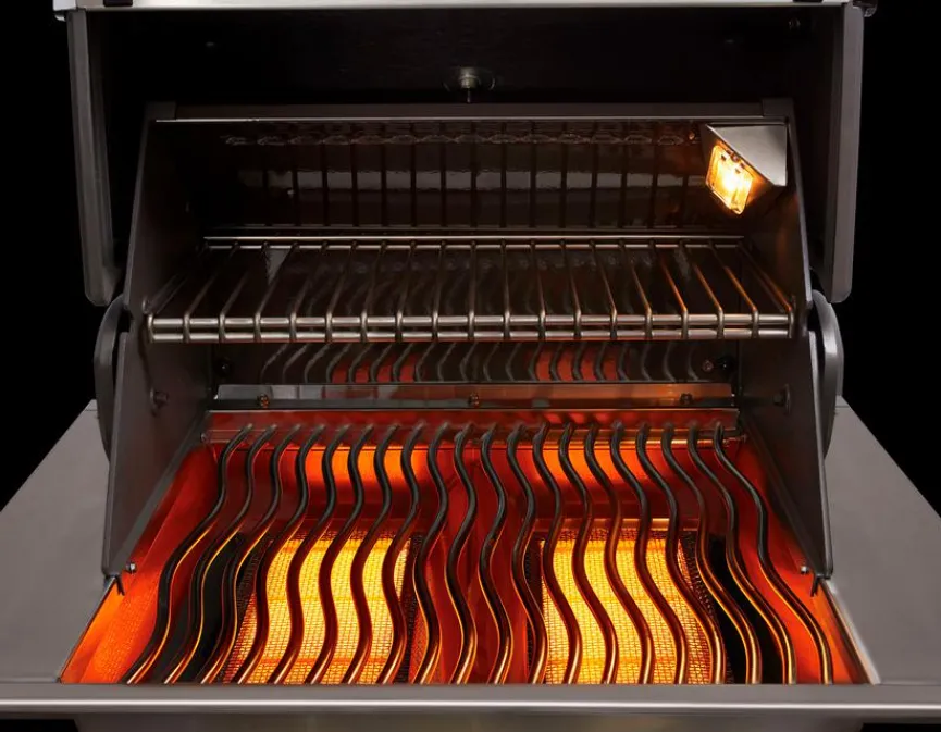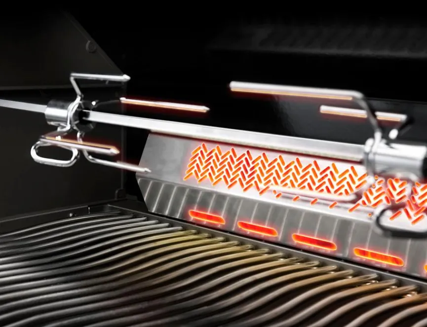 - Mit 4 Hauptbrenner aus Edelstahl, 2 Infrarot SIZZLE ZONE™ Hauptbrenner, Edelstahl-Infrarot-Heckbrenner und Zweistufiger Power-Seitenbrenner