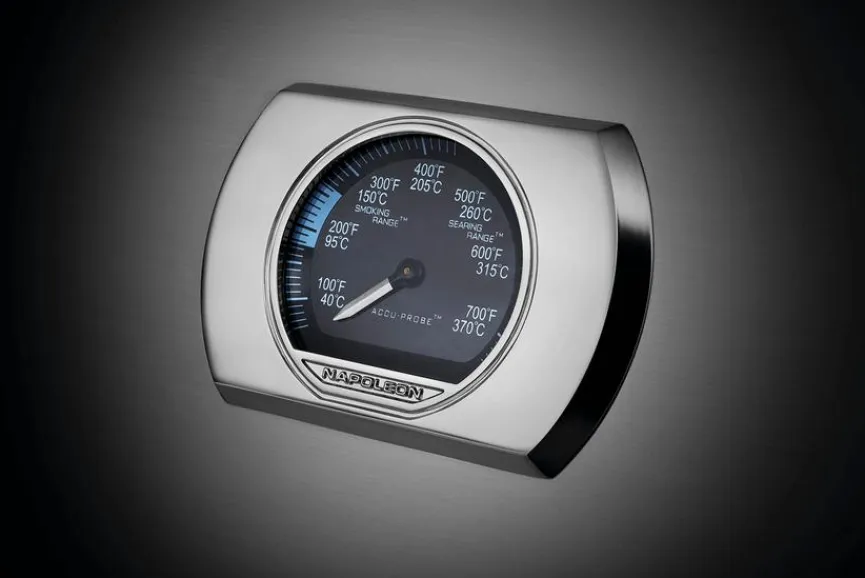 - Mit integriertem ACCU PROBE™ Deckelthermometer in der LIFT EASE™ Rollhaube und Integriertem Räuchereinsatz