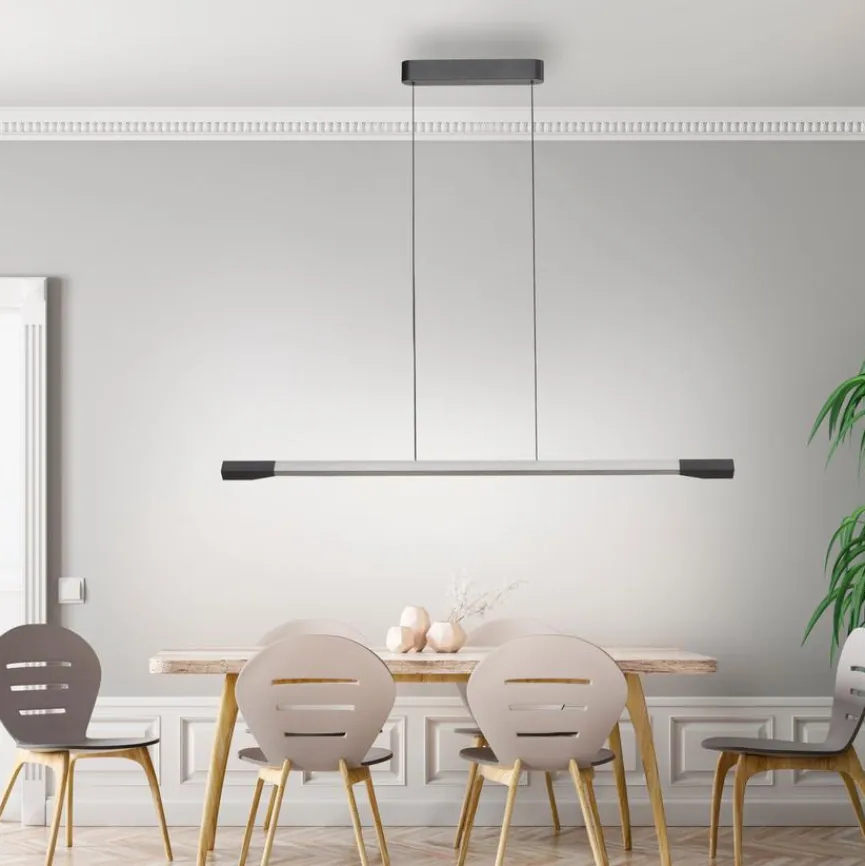 Die LED-Pendelleuchte Hoop von Paul Neuhaus passt durch ihr schlichtes, zurückgenommenes Design in jeden Raum. Für gleichmäßiges Licht über die gesamte Breite sorgt die Lichtleiste der LED-Pendellampe. Die hochwertige LED-Pendelleuchte Hoop macht nicht nur über einem Esstisch eine sehr gute Figur, sondern passt auch hervorragend über eine Küchentheke oder Kochinsel.
