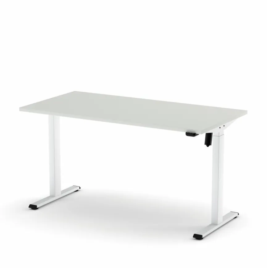 - Metall T-Fußgestell mit einmotorigem Antrieb in RAL 9010 Pure White