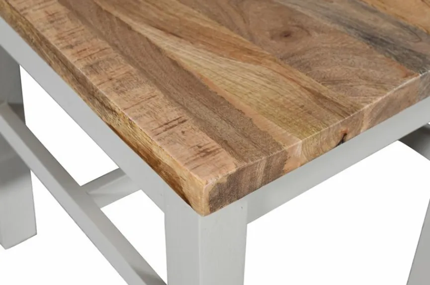 Das ursprünglich aus Indien stammende Mangoholz wurde vor einigen Jahren für die Möbelherstellung entdeckt. Es besticht mit einer hellen, natürlich braunen Farbe. Mit der frischen, klaren Optik passt es perfekt zum angesagten Massivholztrend.