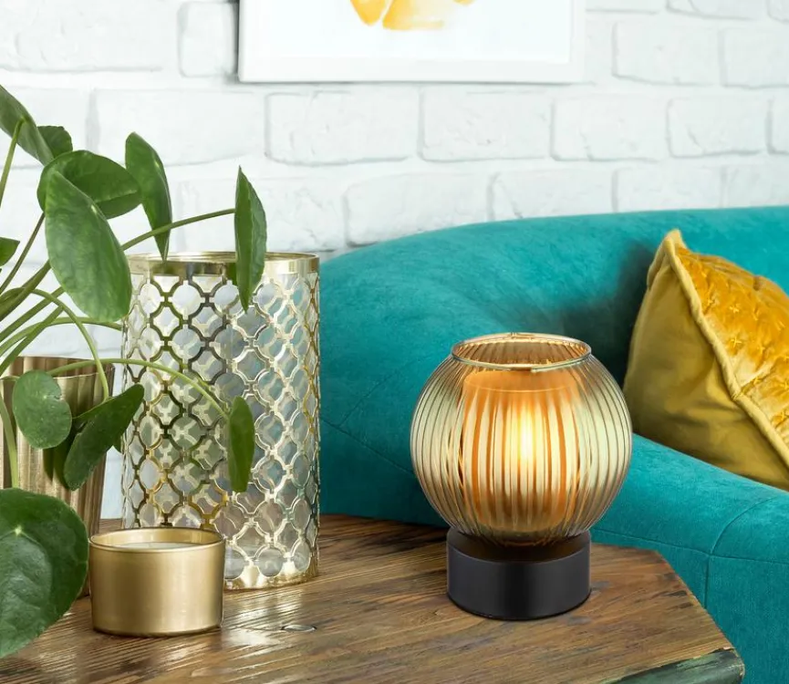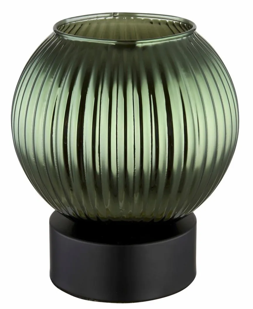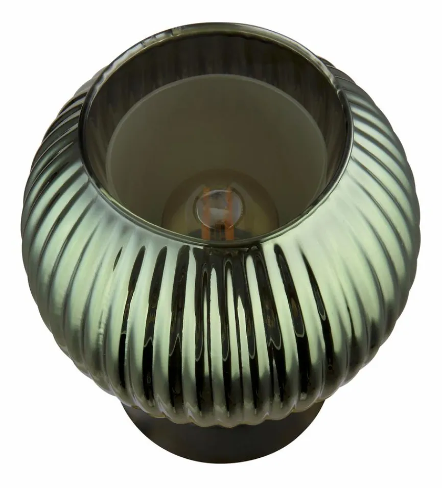 Die Globo Tischleuchte Zumba wirkt schlicht, geschmackvoll und elegant. Ein rundlich geformter Glasschirm, der mit einem markanten Rillendesign die Blicke auch sich lenkt, prägt im Wesentlichen das Erscheinungsbild dieser Tischlampe. Kombinieren lässt sich die mit einem Wippschalter versehene Tischleuchte Zumba sowohl mit modernen als auch mit klassischen Einrichtungsstilen.