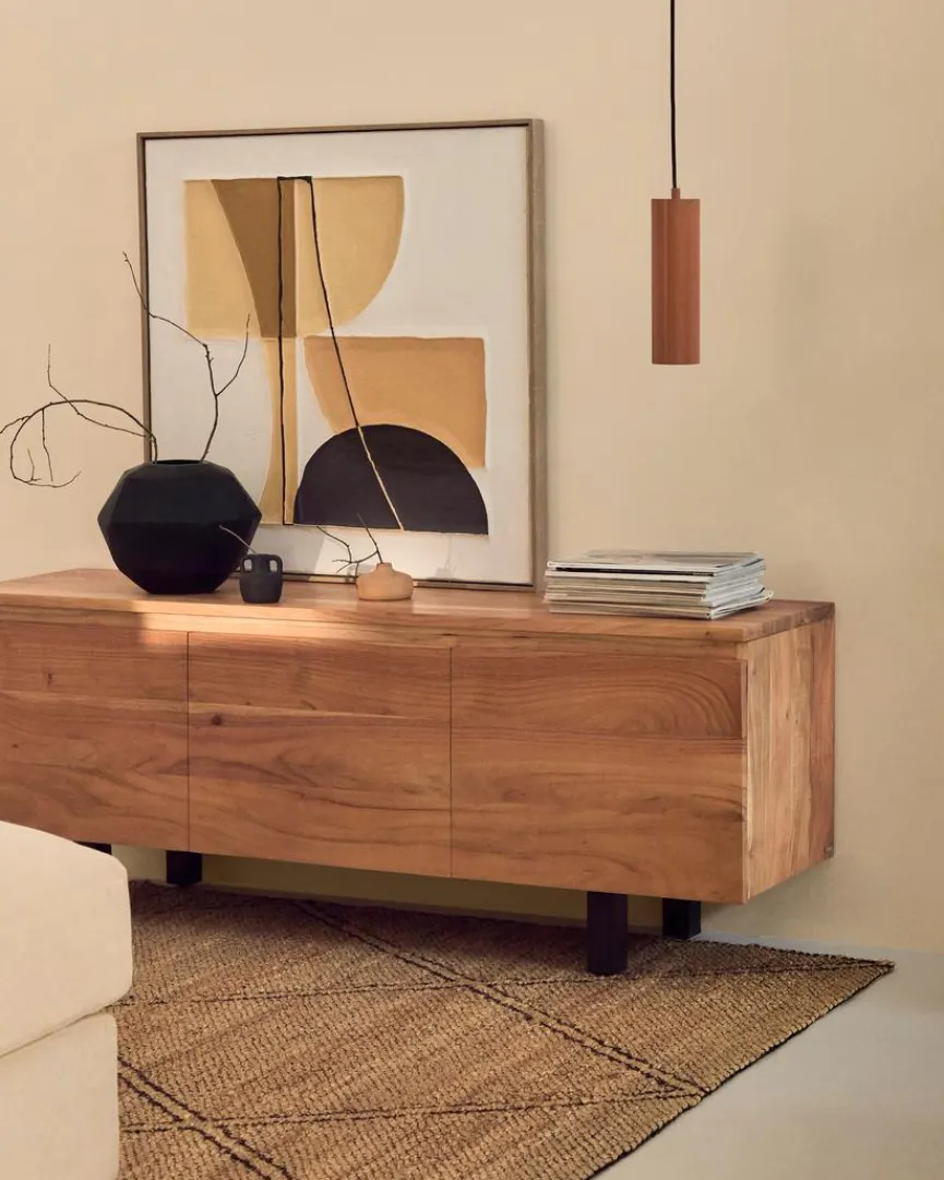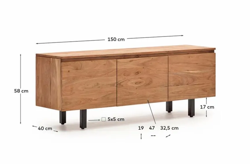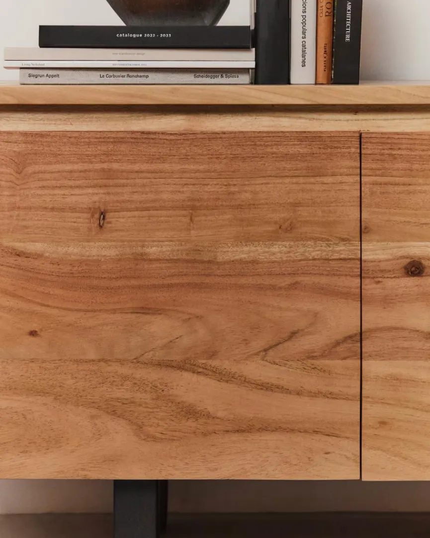Mit dem TV-Lowboard Uxue von Kave Home setzen Sie im Handumdrehen trendige Akzente, denn das rustikale Design trifft den Nerv der Zeit. Ausgestattet ist der TV-Unterschrank mit drei Türen und unterschiedlich großen Fächern, die jede Menge Stauraum für Nützliches und Liebgewonnenes bieten. Kombinieren Sie das TV-Lowboard Uxue gerne zu modischen und schnörkellosen Wohnkonzepten für ein stimmiges Flair.