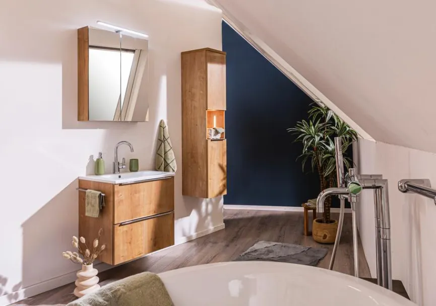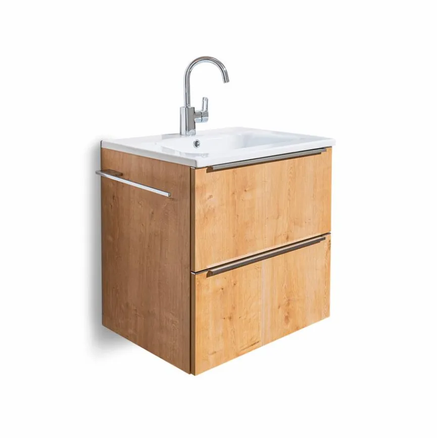 - Inkl. Waschtischunterschrank mit 2 Auszügen mit Holzrückwand, Siphonausschnitt und Kosmetikeinsatz