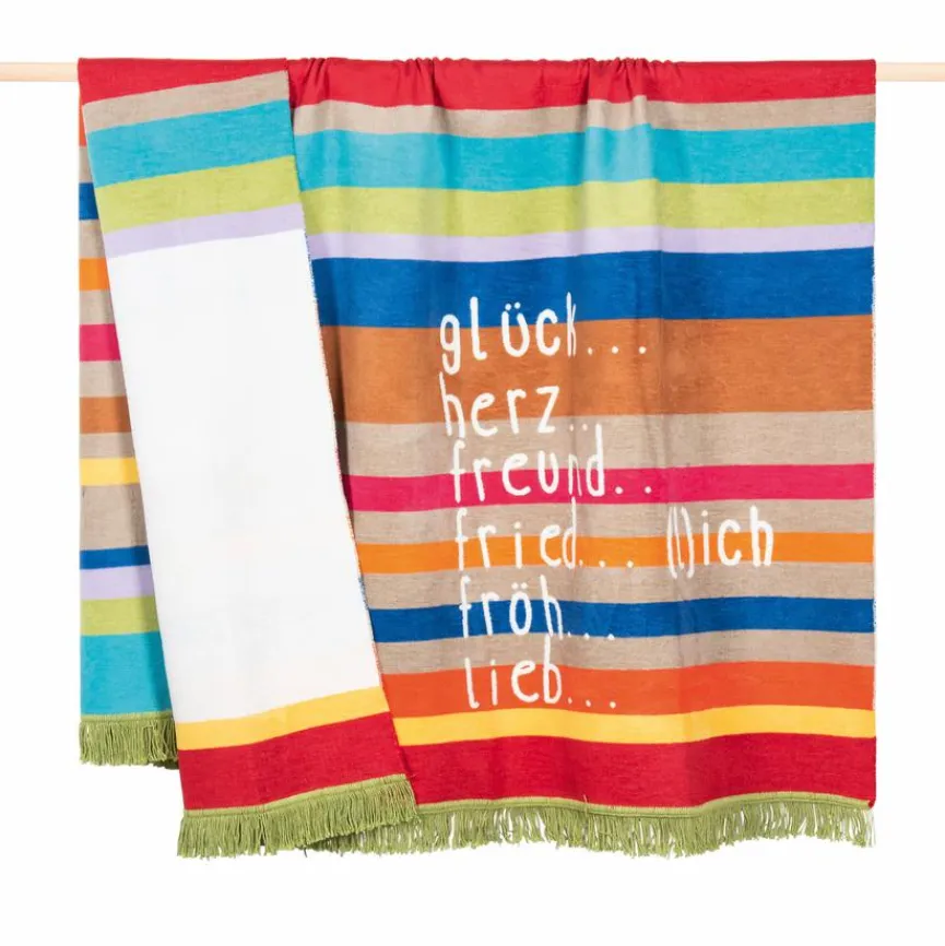 Die Kuscheldecke Letters 150×200 cm von pad lädt zum Einmummeln auf dem Sofa an langen, kalten Wintertagen ein. Die Wohndecke ist mit Wohlfühlbotschaften und einem frühlingshaften Design versehen, das Ihre trüben Gedanken schnell vertreibt. Die Kuscheldecke Letters 150×200 cm wärmt auf eine stylische Art und Weise.