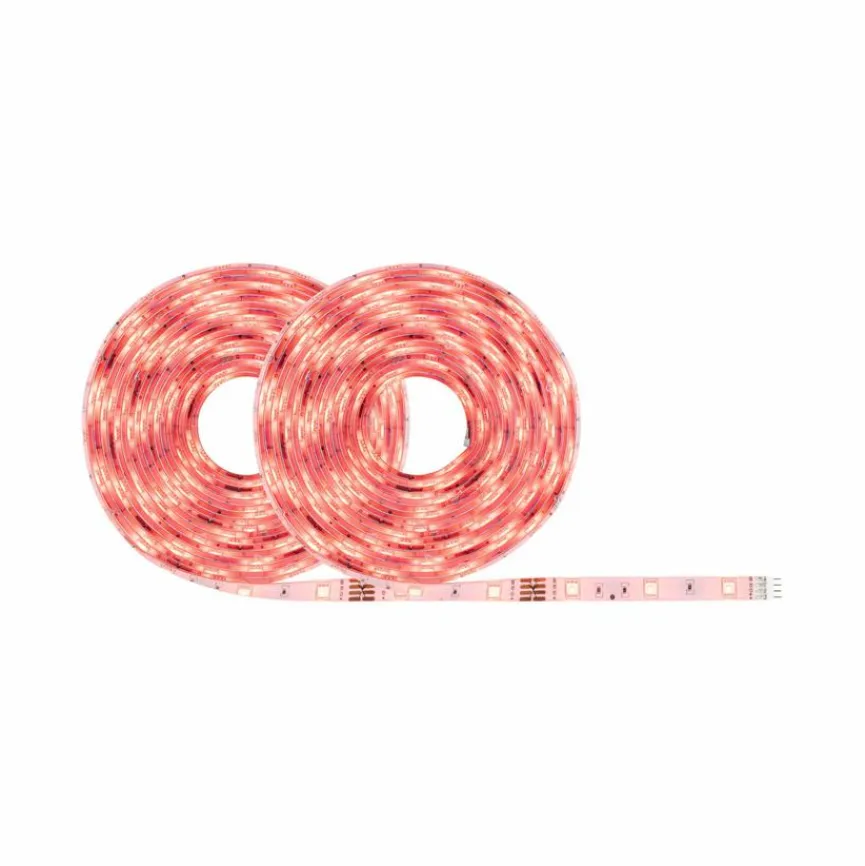 Das Set LED-Flexband Simple LED 10m der Marke Paulmann setzt sich aus einem LED-Streifen, einem Netzteil sowie einer Fernbedienung zusammen. Mithilfe der Fernbedienung sind Sie in der Lage, die Helligkeit zu dimmen, Farben zu wechseln und Lichteffekte zu erzeugen. Perfekt eignet sich das LED-Flexband Simple LED 10m zur Montage auf einem flachen oder gewölbten Untergrund.