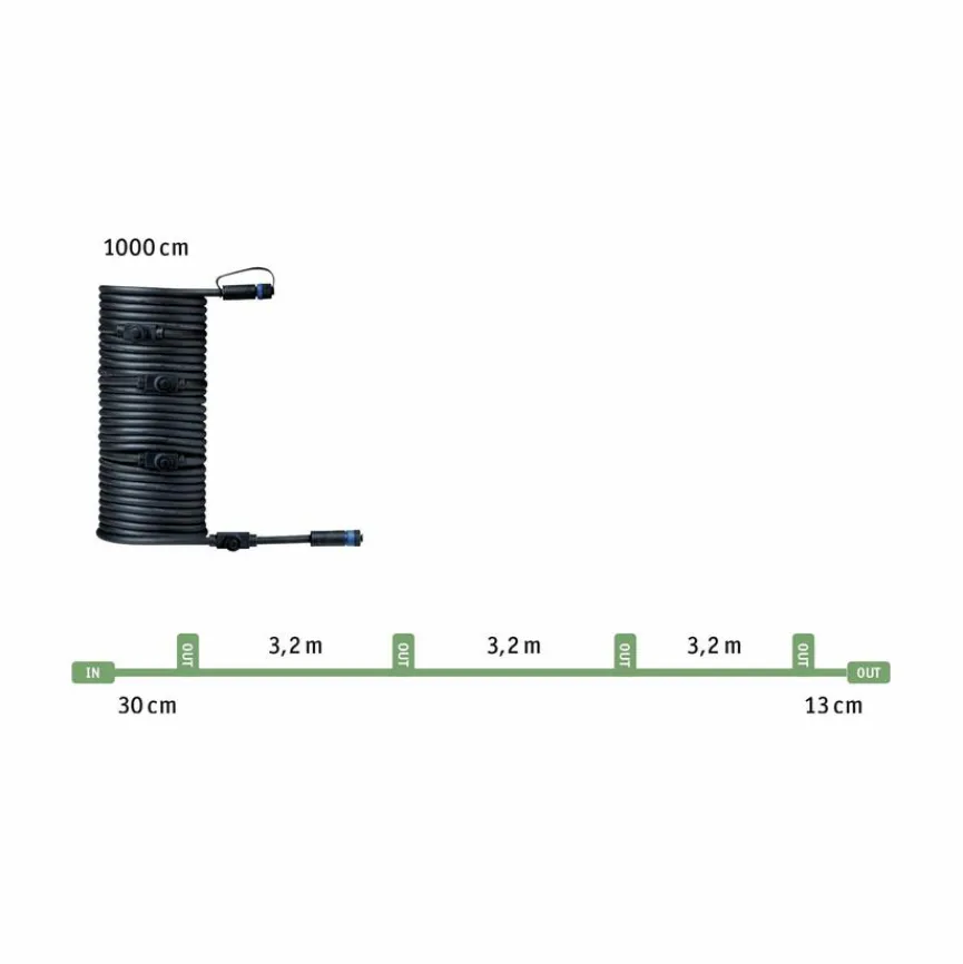 Das Paulmann Verbindungskabel Plug & Shine überbrückt Entfernungen von mehreren Metern und ermöglicht Ihnen den Anschluss von weiterem Zubehör. Nicht benötigte Abgänge werden dabei einfach mit den Abdeckkappen verschlossen. Kombinieren Sie Leuchtkörper und Trafos aus dieser Serie mit dem Verbindungskabel Plug & Shine und lassen Sie Ihren Außenbereich von der Hauswand über die Terrasse bis hin zu den Gartenwegen erstrahlen.