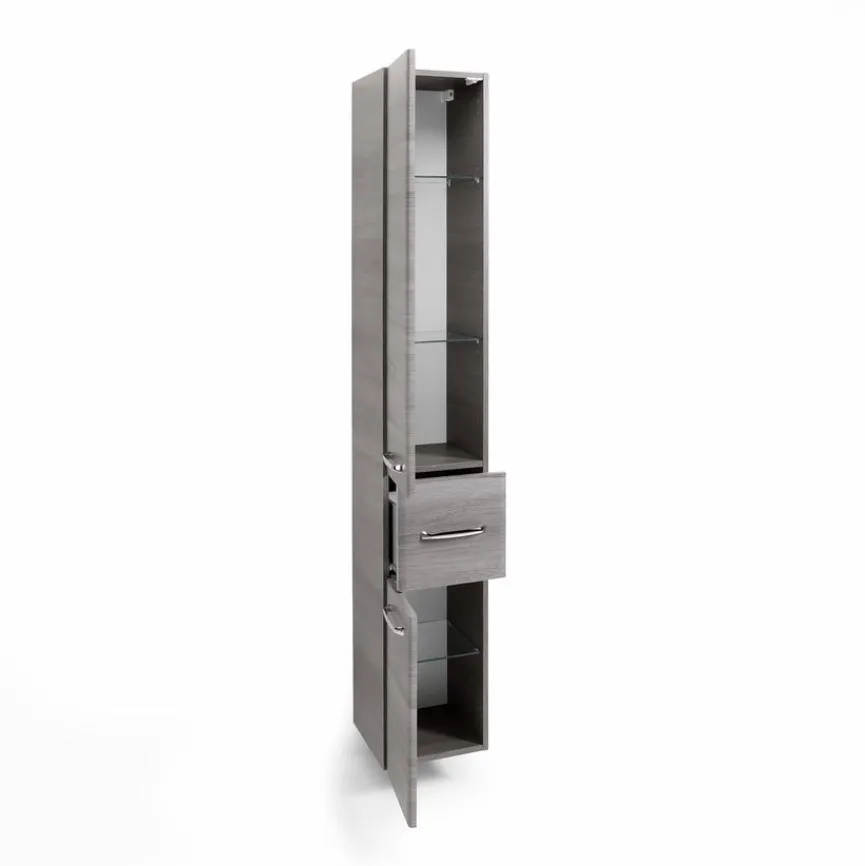 Der moderne Hochschrank Quick 328 punktet mit klassisch schönem Design. Hinter zwei Drehtüren gibt es genug Platz, um Handtücher, Badaccessoires und Kosmetikartikel griffbereit zu platzieren. Der Schubkasten bietet zusätzlichen Stauraum.