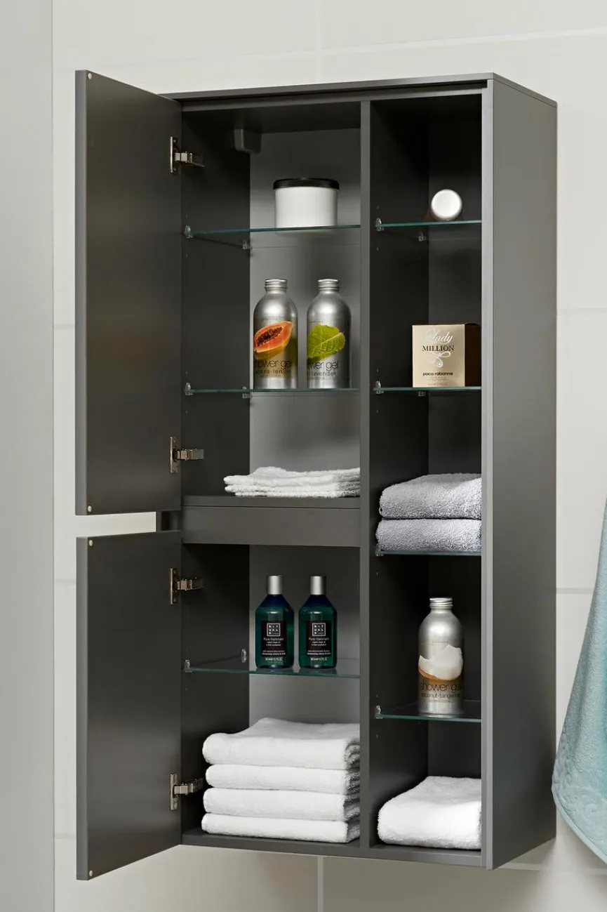 Der Midischrank Parma600 der Marke Pelipal ist nicht nur praktisch, sondern auch ein echtes Designerstück. Durch die geschmackvollen farblichen Kontraste und die elegante Formgebung erhält das Möbel eine attraktive und moderne Optik. Im Inneren bietet der Midischrank Parma600 von Pelipal praktischen Platz für Handtücher, Kosmetik und andere Gegenstände.