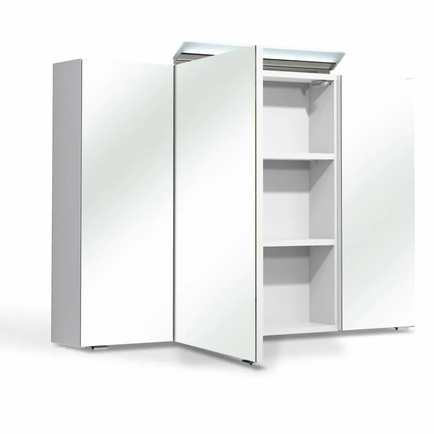 Mit dem Spiegelschrank Quick 341 von Pelipal können Sie kleinere Gegenstände und Utensilien ordentlich aufbewahren. Hinter den drei Türen des Einrichtungsgegenstandes befinden sich insgesamt sechs Einlegeböden. Zur weiteren Ausstattung gehört bei dem Spiegelschrank Quick 341 von Pelipal eine praktische LED-Leuchte sowie eine Steckdose.
