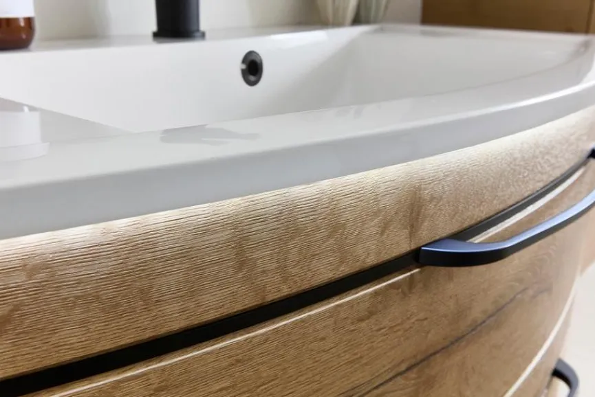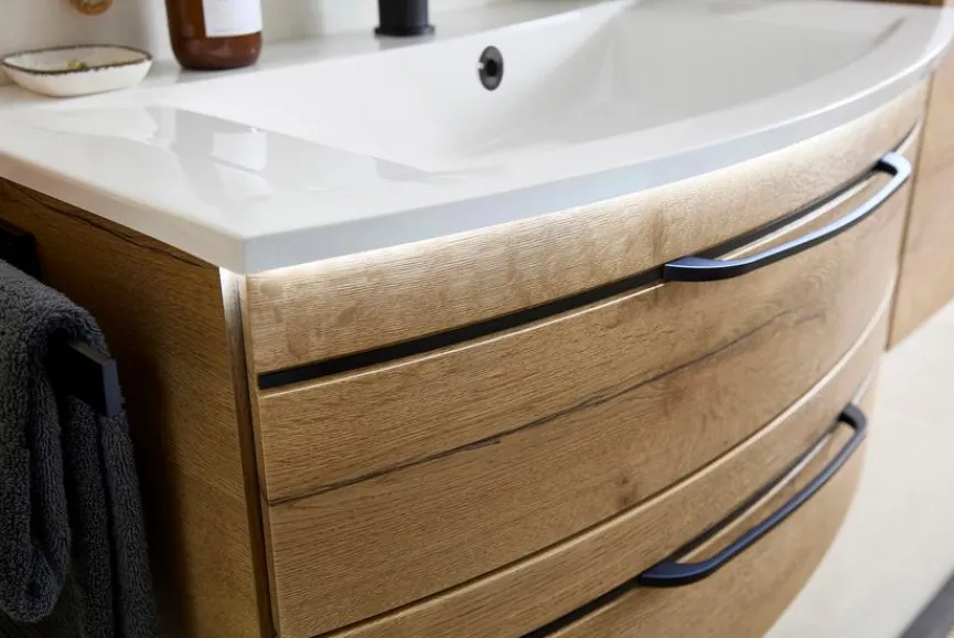 - Inkl. Waschtischunterschrank mit 2 Auszügen inkl. Griffe in schwarz matt
