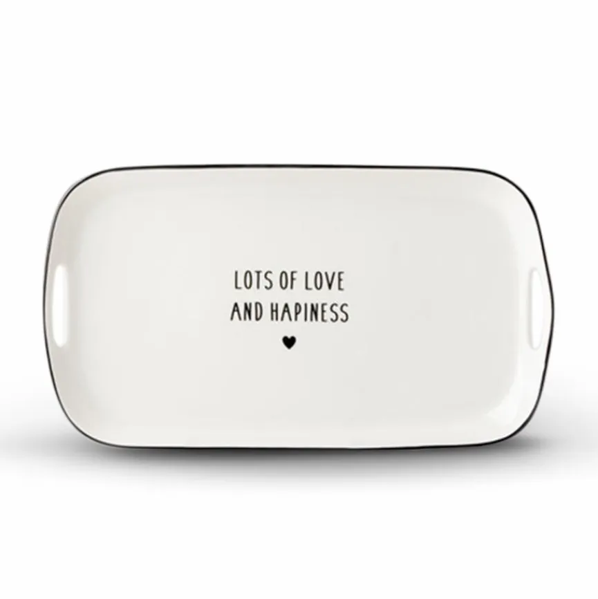 Mit der Servierplatte Jessica 30,3×17,4 cm erzeugen Sie spielend leicht ein positives, romantisch verspieltes Ambiente. Ein schicker Schriftzug und ein dezentes Herzchen-Motiv verleihen dem Tabletts einen überaus charmanten Look. Zudem kann die hochwertig verarbeitete Servierplatte Jessica 30,3×17,4 cm in puncto Qualität auf ganzer Linie überzeugen.