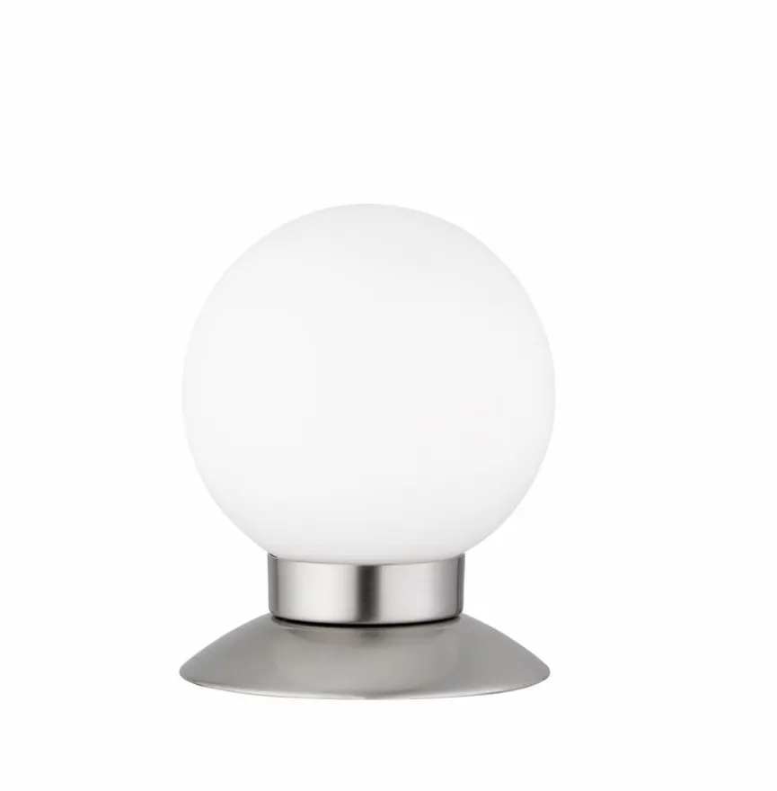 Die LED-Tischleuchte Princess aus dem Hause Reality Leuchten zeichnet sich durch ihre konsequente Rundoptik aus. Sowohl der Kugelschirm der LED-Tischlampe als auch der runde Fuß strahlen Stabilität und Sicherheit aus und gefallen mit dem modernen Styling. Mit der LED-Tischleuchte Princess von Reality Leuchten haben Sie eine in jeden modern eingerichteten Raum passende Lichtquelle zur Verfügung.