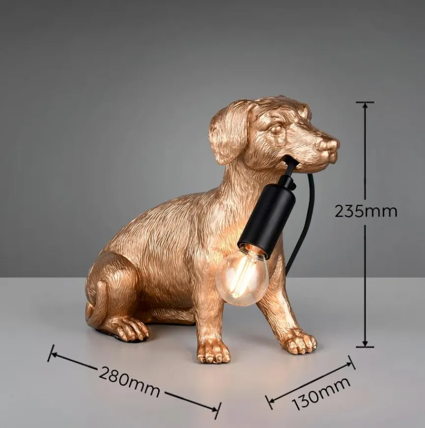 Wenn Sie verspielte Designs lieben und dazu noch ein ausgesprochener Hundeliebhaber sind, dann lässt die Tischleuchte Rudi von Reality Ihr Herz springen. Haben Sie beim Anblick dieser zuckersüßen Tischlampe nicht auch das Bedürfnis, dem frechen Dackel den Kopf zu tätscheln und ihm die erbeutete Leuchte sanft zu entringen? Schenken Sie sich selbst oder Ihren Lieben ein Lächeln – die Tischleuchte Rudi ist ein Garant dafür.