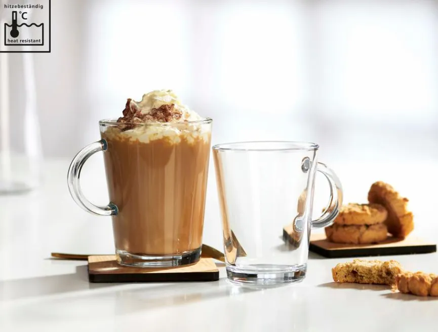 Der Kaffeebecher Arco 380 ml von Ritzenhoff & Breker gibt Ihnen die praktische Möglichkeit, den Inhalt Ihres Trinkgefäßes von allen Seiten zu betrachten, wenn beispielsweise die Kaffeesahne in Wolken durch die dunkle Flüssigkeit zieht. Natürlich ist die Kaffeetasse auch für einen köstlichen Tee geeignet. Punkten kann der Kaffeebecher Arco 380 ml zudem durch seinen stabilen Henkel, der einen festen Griff erlaubt.