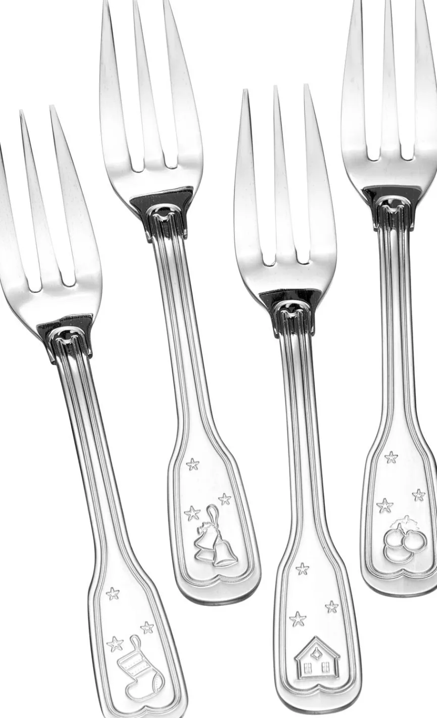 Mit den Kuchengabeln Holly 4tlg. von Ritzenhoff & Breker können Sie Ihre Lieben zum Fest mit einer besonderen kleinen Überraschung am Kaffeetisch begeistern. So haben die Exemplare des Besteckquartetts verschiedene weihnachtliche Motive wie z. B. ein Lebkuchenhaus oder Glocken auf den Griffen. Dank der zauberhaften Kuchengabeln Holly 4tlg. schmecken die gebackenen Köstlichkeiten noch leckerer als sonst.