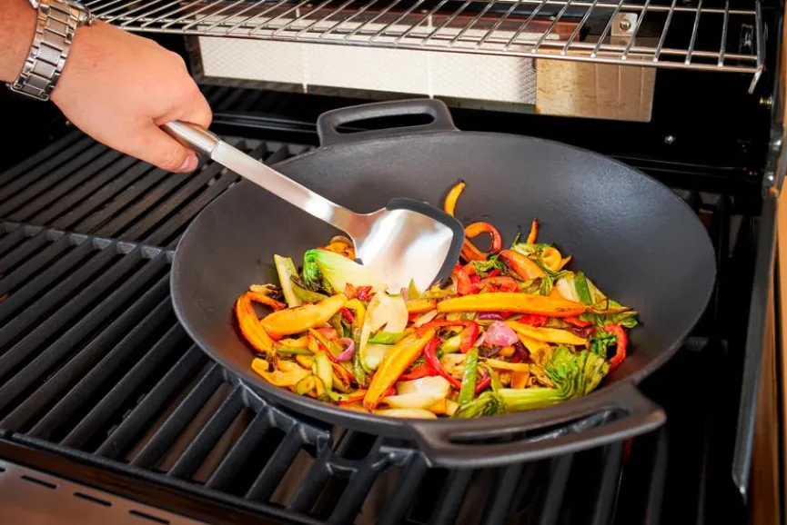 Mit dem Grill-Wok Vario von Rösle können Sie asiatisch inspirierte Gerichte zubereiten, die sich dank des speziellen Garverfahrens durch delikate Röstaromen auszeichnen. Der für das Vario-System ausgelegte Wok kann universell eingesetzt werden und lässt sich aufgrund seines flachen Bodens auch auf normalen Küchenherden nutzen. Wenn Sie Abwechslung in den Küchen-Alltag oder in die Grillsaison bringen möchten, ist der Grill-Wok Vario von Rösle eine optimale Wahl.