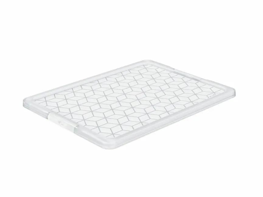 Mit dem Deckel Evo Easy der Schweizer Marke Rotho decken Sie perfekt Ihre passenden Boxen ab und schützen den Inhalt vor Verschmutzung, Staub und Nässe. Das transparente Design mit dem originellen Muster ziert den Deckel und erlaubt gleichzeitig einen Blick in die Box, sodass Sie deren Inhalt bei Bedarf jederzeit schnell parat haben. Die beidseitigen Clips schließen den Deckel Evo Easy sicher seitlich ab.