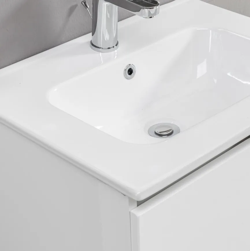 - Keramik-Waschbecken in Weiß glänzend, mit Hahnloch- und Überlaufbohrung